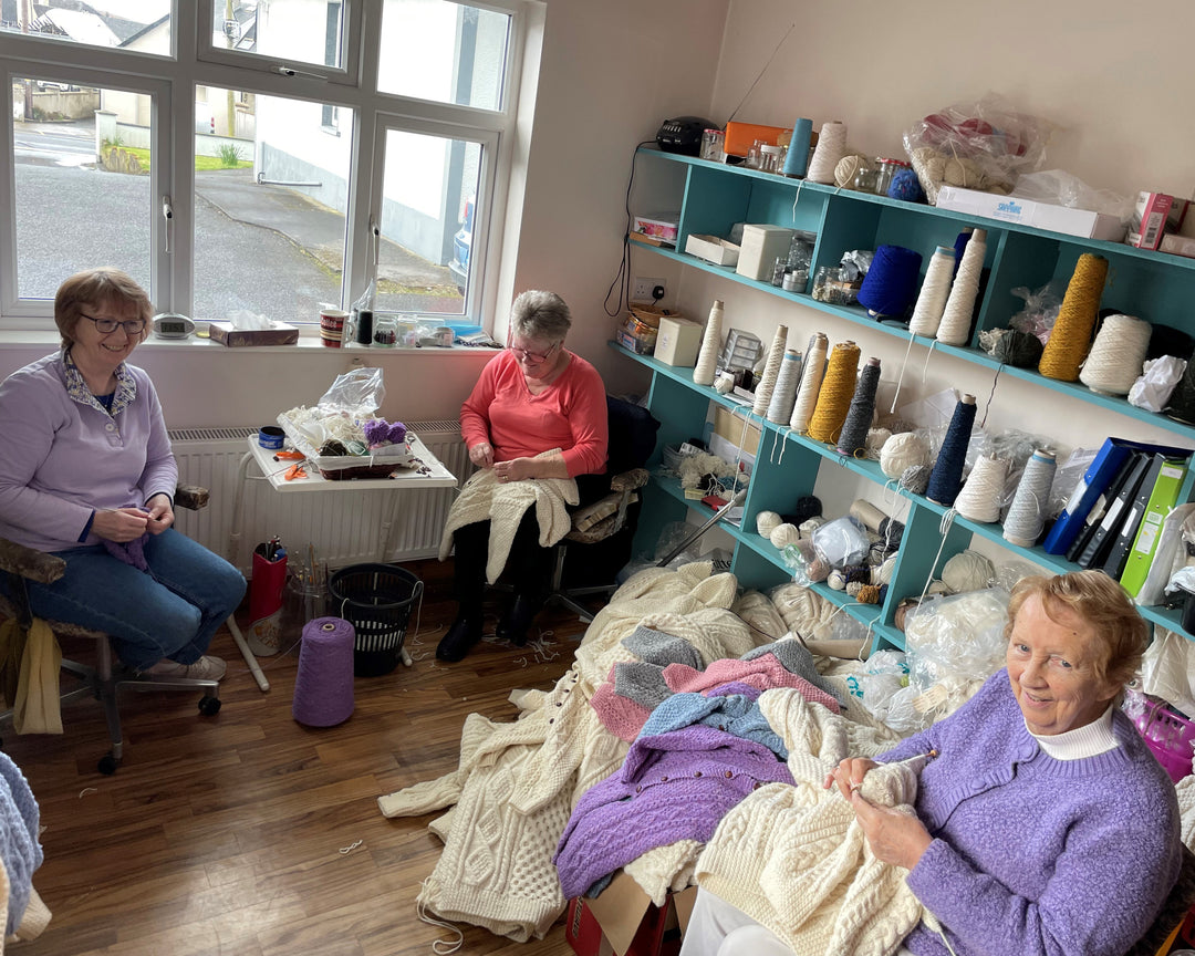 In addition to Donegal merino, a limited number of our signature pieces use super-fine Italian merino for an extra touch of luxuriousness. The use of Italian merino allows us to offer a wider range of colours too. Our only non-merino yarn is the beautiful ‘Kilcarra Aran Tweed’ wool. This durable, more traditional yarn is very suitable for outerwear, so we use it for some of our Snugi Snamh hats, dog jumpers and other knitted accessories.